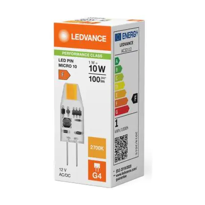 Ledvance LED Pin Micro 12V G4 Chiara 1W 100lm - 827 Bianco Molto Caldo | Sostitutiva 10W