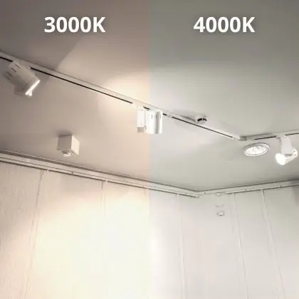 Il modo in cui un faretto LED a binario illumina i prodotti e/o gli oggetti dipende dalla temperatura di colore della luce e dalla resa cromatica (CRI), che in questo caso sono 3000K - Luce Calda e 90-99 - Perfetta resa cromatica Ra.