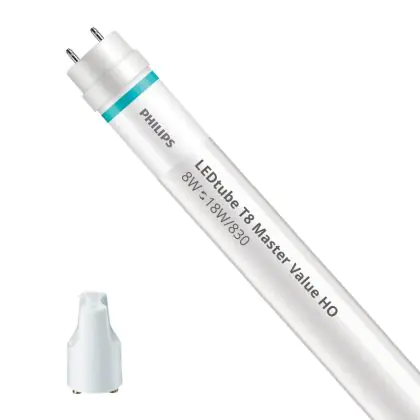 Philips Tubo LED T8 MASTER Value (EM/Mains) High Output 8W 1000lm - 830 Luce Calda | 60cm - Sostitutiva 18W